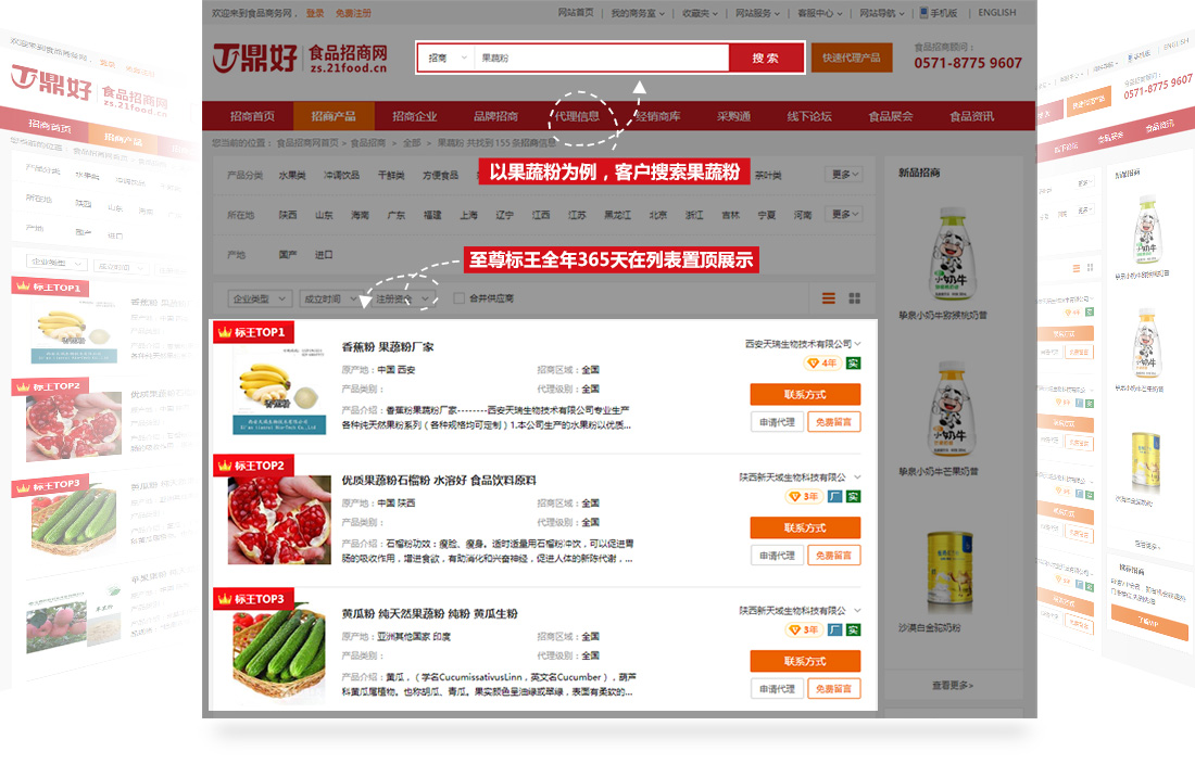 是企業鞏固宣傳品牌、實現精準營銷,快速提升網絡詢盤的理想選擇。享有在食品招商網中至高無尚的推廣和宣傳機會,是迅速超越同行,獲得行業及潛在客戶認識、認可、合作的首選工具。